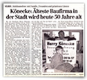 01.04.2000 | Könecke: Älteste Baufirma in der Stadt wird heute 50 Jahre alt "Bei der Baufirma Harry Könecke packt die ganze Familie mit an. Großvater Harry hat das Unternehmen gegründet, dessen Sohn Uwe ist heute Inhaber, Ehefrau Sigrid hält die Stellung in der Buchhaltung und ihre Söhne Jens und Carsten (...)" ![]() |